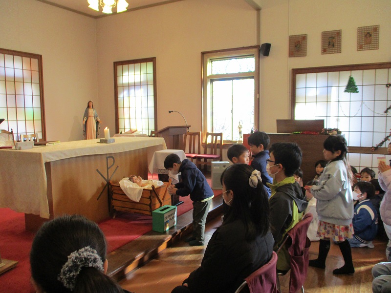 お知らせ NEWS&TOPICS 保護者向け 園誌まなざし 保護者向け 土曜会 クリスマス会🌲 2025.12.06 『メリークリスマス🕯』 献金をお捧げる子ども達。ご協力、ありがとうございます! 教会にて…お祈りの様子 代表の子ども達と『共同祈願』 神父様からプレゼントを頂きました。 お楽しみゲーム① 『フープくぐり』手を離さないで頑張りました! お楽しみゲーム② 『新聞ツリー』どのチームが高いツリーになるかな~? プレゼント交換 1、2年生 男の子 プレゼント交換 1,2年生 女の子 プレゼント交換 3~6年生 男の子 プレゼント交換 3~6年生 女の子 七五三お祝い会